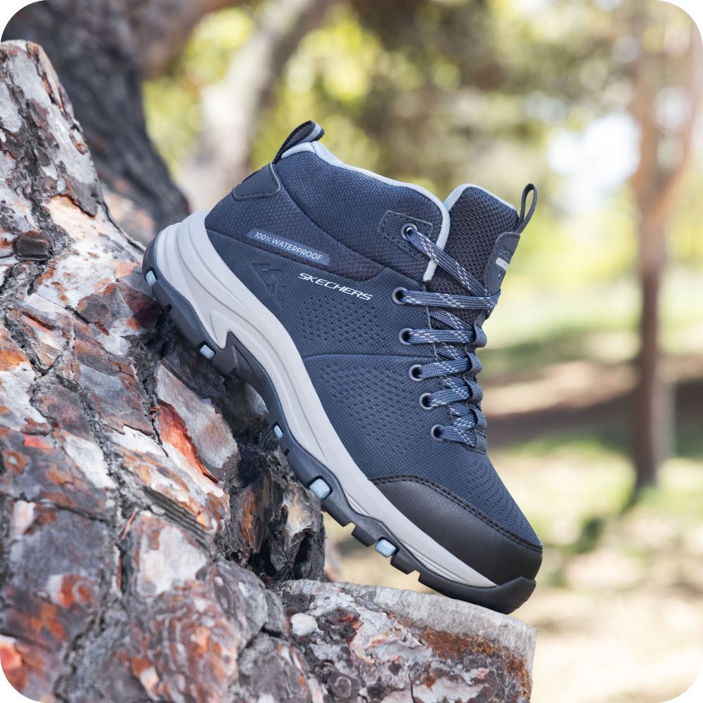 - For more structure and protection: Headed out for a more serious hike? Go for a hiking boot shape with a higher collar and a protective upper. Skechers Trego, Yana and Max styles all deliver serious hiking boot strength.